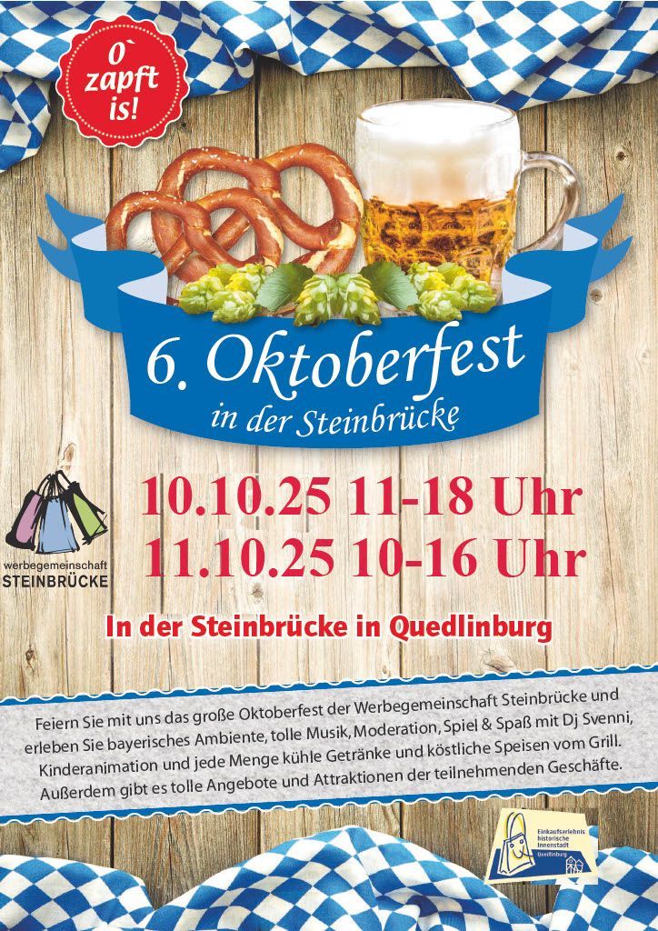 Wir feiern zum 3. Mal das Oktoberfest der Werbegemeinschaft! Freuen Sie sich auf zünftige Blasmusik, deftiges Essen und kühles Bier – Moderation mit DJ Svenni. Gewinnen Sie tolle Preise bei den Wettkämpfen an unserem "Hau' den Lukas" oder Wettmelkkuh. O'zapft is!